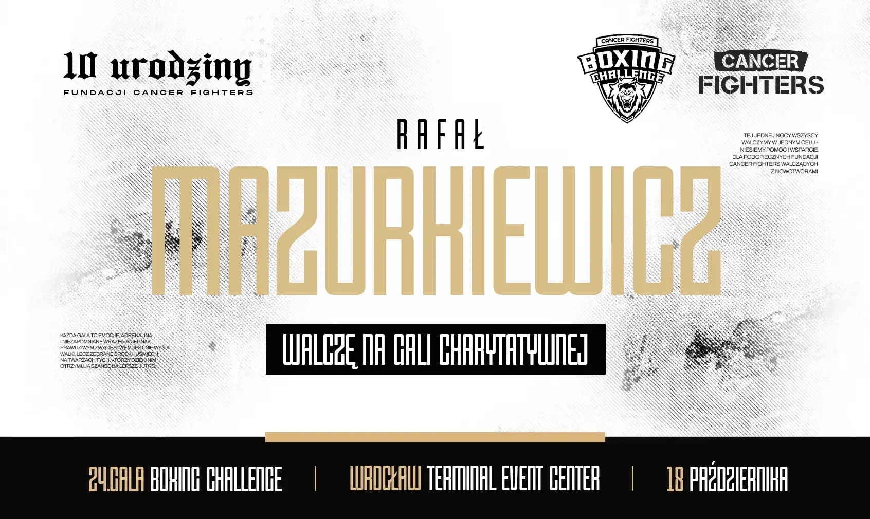 Boxing Challenge by Cancer Fighters to charytatywna gala bokserska, w której każdy może zawalczyć o coś więcej, niż zwycięstwo! Nie ważne czy jesteś biznesmenem, sprzedawcą, pracujesz w korporacji, jesteś trenerem personalnym czy freelancerem.